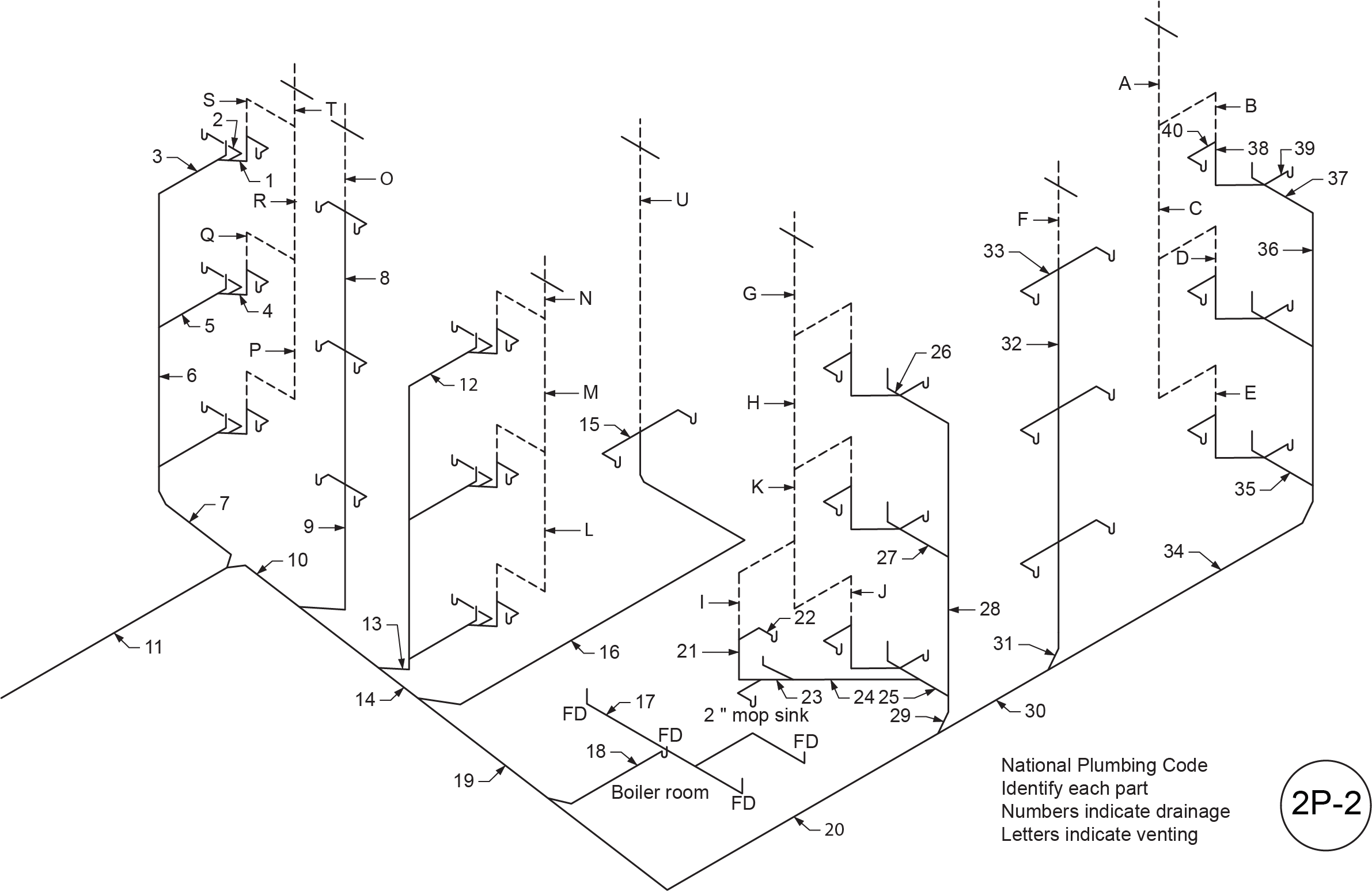 1.  Using Figure 2P-2, fill in Table 2 by identifying the drains indicated by the numbers and the vents indicated.
